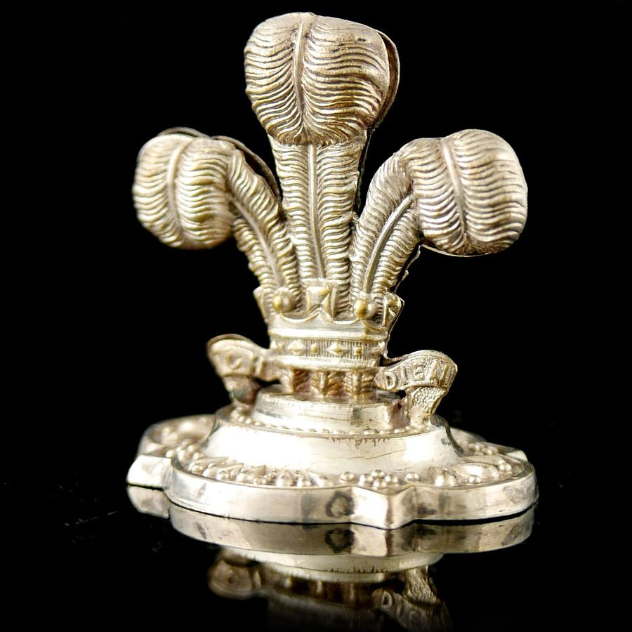 Silver plate. Modelled as the Prince of Wales’s feathers and motto ‘Ich Dien’.