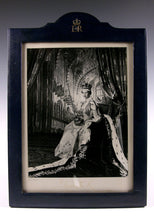Sir Cecil Beaton’s official portrait of the 1953 coronation shows the Queen seated against the backdrop of the fan vaulted ceiling of the Henry VII chapel adorned with the knights’ banners of the Order of the Bath in Westminster Abbey. The Queen is shown in full coronation regalia, wearing the St. Edward’s crown, the Armills (bracelets), the crimson velvet Robe Royal, and holding the Sceptre with the Cross and the Sovereign’s Orb. Signed in the mount by the sitter and photographer.