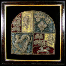 Silver and gold bullion wire on velvet ground as proscribed for the senior officers of arms at the College of Arms - these being, Garter Principal King of Arms, Clarenceaux King of Arms and Norroy and Ulster King of Arms. Framed and glazed. Sleeve length: 45cm (17.75in).