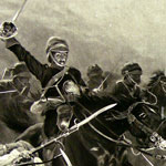 The Moonlight Charge of the composite regiment of the Household Cavalry took place on 28 August 1882. It became the most celebrated action of the British military intervention in the nationalist revolt against the Khedive Tewfik. The Egyptians led by Colonel Ahmed Urabi had attacked British troops under General Graham at Kassassin in order to recapture the Suez Canal. The outcome of the battle hung in the balance as night fell, whereupon reinforcements in the form of the composite regiment of the Household Cavalry, the 7th Hussars and the Royal Horse Artillery, arrived and went immediately into action. By moonlight they cut their way through the Egyptian infantry to reach a battery of guns.