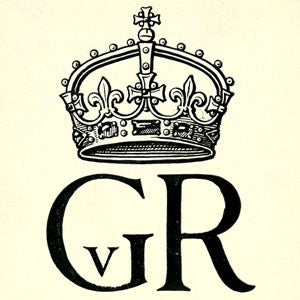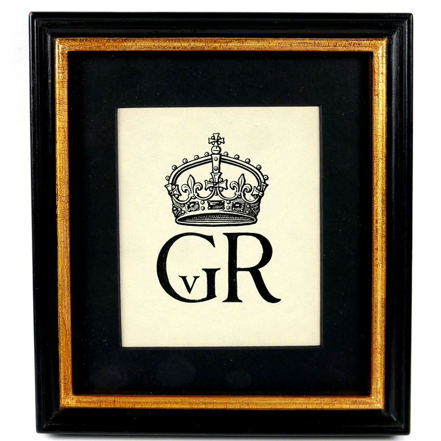 In addition to the traditional set of Royal Library Windsor bookplates in three sizes, George V used three simple cypher bookplates of which the present example is the simplest. The design was sunsequently adapted by King George VI to use as his personal bookplate. Framed and glazed.