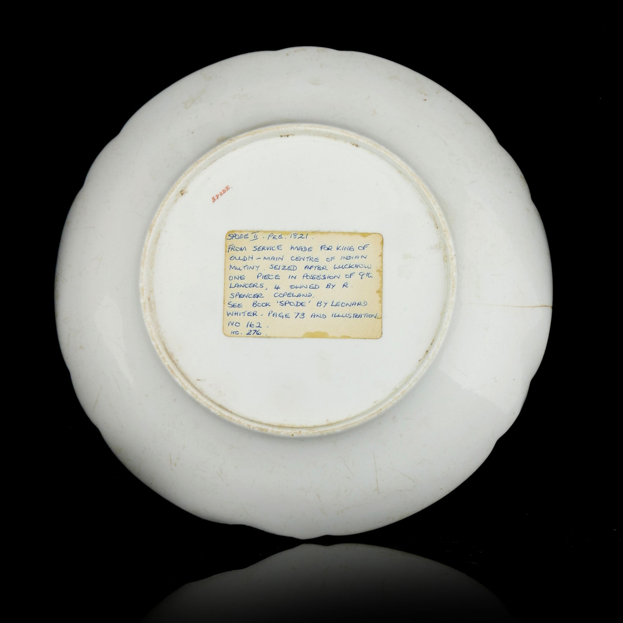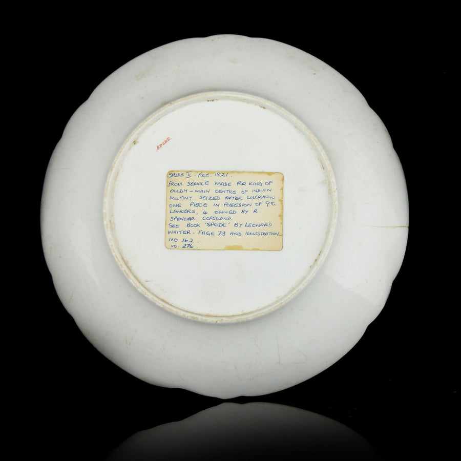 Other pieces from the service formed part of The Copeland China Collection, Trelissick House, Cornwall. Indian Mutiny veteran Captain (later Major-General) Hales Wilkie, 97th Foot, is recorded as displaying several peices in his house at Malvern, while the ceramics historian Leonard Whiter recounts in his book ‘Spode’ (1970), p.73, ‘that following the Siege of Lucknow the King of Oude's treasure was seized and even his tableware was taken by the 9th Lancers. One of the Icepails from this set, still owned by the 9th Lancers’.