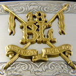 Originally worn by cavalrymen as containers for carbine rifle ammunition, shoulder belt pouches assumed purely decorative usage in the mid 19th century. Later in the century the tradition of recycling the silver elements of an officer’s uniform for domestic use was developed with a number of prestigious London silversmiths carrying out the work to order.