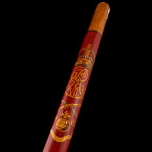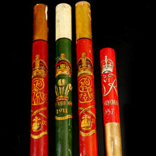 Polychromed wood painted with the state imperial crown over the ERVII cypher and coronation regalia, as carried by the former naval and military officers who acted marshals known as Gold Staff Officers (GSOs) in Westminster Abbey on Coronation Day.
