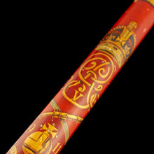 Polychromed wood painted with the state imperial crown over the GV cypher and coronation regalia, as carried by the former naval and military officers who acted marshals, or Gold Staff Officers, in Westminster Abbey on Coronation Day.