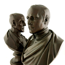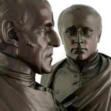Patinated bronze. Bust Napoleon in uniform and cloaked. After Marochetti. Unsigned. Bust of Wellington in civilian dress and cloaked. Signed and dated ‘C. Marochetti Pubd. Novber 4th 1852’. Both bust raised on matching intehral bronze socles.