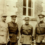 Bombon, in the Seine-et-Marne department of north central France, is often referred to as the birthplace of the Victory in 1918, and it was there in the courtyard of its 18th century château that Foch was presented with the baton of a Marshal of France on 6 August 1918 in the presence of Haig, Pershing, and Pétain and France’s highest political figures. It is likely that it was on this occasion that Captain Pupier took the present image. The image later became well known when syndicated under the copyright of the American photographic news agency Underwood and Underwood.