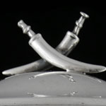 In December 1857 the Gurkhas were incorporated into Jounpore Field Force, which comprised H.M’S 97th Foot, under Brigadier-General Thomas Harte Franks, and took part in actions at Misrutpore and Chanda, where Muhammad Yar Khan, the chakladar (revenue officer) of Oudh, was engaged with a force of 5,000 men and five guns; at Ummeerpore, Sultanpore, and afterwards at the seige and capture of Lucknow in March 1858. The civilians referred to on the present cup were possibly members of the Bengal Civil Service who were similarly attached to Gurkha forces as volunteers. Gully, who was favourably mentioned in Franks’ despatch dated ‘Camp, Mahomed Bagh, before Lucknow on 12 March 1858 (London Gazette 31.3.1858), later served as a brigade major in the Saugor Field Division in the Central India campaign. He returned to England after the Mutiny and married into the Knatchbull family. He died at Calcutta in 1864.