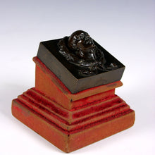 Dr. Francois Carlo Antonmarchi (1780-1838) was Napoleon’s physician in exile on the island St Helena. Having fallen on hard times in 1833, he produced a full scale death mask for sale to subscribers in editions in plaster or bronze taken from his original of 1821. The present curio reflects the revived enthusiasm for Napoleon I following reburial at Les Invalides in 1840, and the failure of the Bourbon restoration of 1814-1848.