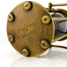 Brass frame holding the glass timer filled tin filings; one end engraved with the maker’s name ‘Crichton / London’, over the East India Company’s ‘Sign of Four’ trademark, and name and date, ‘MacQueen’ / 1832’, for the Honourable Company’s Ship Macqueen (1333 tons).