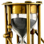By the early 19th century sand glasses or those filled with lead or tin filings were used on ships to measure watch times, typically in half-hour periods. Traditionally the helmsman was responsible for turning the glass, thus supplying the time to be registered on the ship's log. Watch measurement began at midday when the ship's bell was struck eight times. After the first glass had emptied (half an hour), the ship's bell was struck once, after another glass, twice, and so on until four hours after midday, when it was again struck eight times. At that point, a new watch began, and the sequence was repeated. The present glass was made by John Crichton (fl.1831 and 1865) of Leadenhall Street, London whose premises were located close to the Honourable Company’s headquarters, East India House.