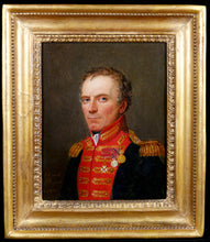 Oil on canvas. The subject is depicted quarter length in Royal Artillery 1812 pattern coatee wearing the breast badge of a Companion of the Bath, awarded to him on the recommendation of the Duke of Wellington; the Sultan’s Gold Medal for Egypt (1801); and the Waterloo Medal (1815). Canvas size: 24cm (9.5in) x 18.5cm (7.25in). Contained in a period giltwood frame. Signed by the artist ‘Edouard Pingret’ and dated ‘Auot 1818’.