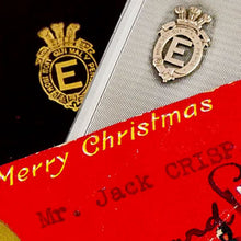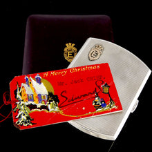 Silver. Of rectangular form with arched top and bottom, the engine turned hinged lid applied in the top left corner with the cypher of Edward, Prince of Wales in gold, comprising P.oW. feathers and the Garter encircling the initial 'E’. Gilt interior. Maker’s mark of R&R. Hallmarked London 1934. Contained in its original velvet and silk lined fitted box of the Royal warrant holder Alfred Clark Ltd, 49 Davies Street, London, the deep burgundy morocco exterior bearing the gilt tooled ‘E’ cypher of the Prince. Complete with the original Christmas gift tag bearing the name ‘Mr. Jack CRISP’ in typescript and autograph signed ‘Edward P’.
