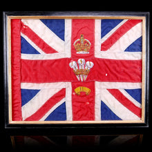 No. 2 Company Colour bearing the Prince of Wales’s feathers - ‘Three feathers argent, quilled or, out of a Prince’s coronet or. A Badge of Edward, son of Edward III, granted by William III in 1696 - ensigned with a King’s Crown in the centre and the Company numeral on a scroll below’; mounted to a board inscribed verso in pencil in an unknown period hand ‘Picked up on the sands at Dunkirk / It was the Company Colour of the 2nd Batt. [sic] Coldstream Guards / commanded by Captain The Lord Frederick Cambridge / who was killed on the Doyle Canal at the beginning of / the retreat towards Dunkirk May 1940’. Flag: 45cm (17.75in) x 61cm (24in). Framed and glazed.