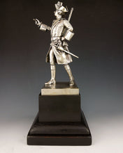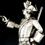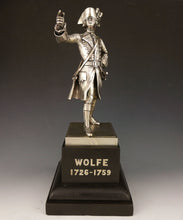 Silvered bronze figure of Major General James Wolfe, Commander in Chief of his Majesty’s Forces in the Expedition against Quebec, mounted on an ebonised wood base. Modelled after the painting J.S.C. Schaak. Maker’s signature of Goldsmiths & Silversmiths Company Ltd, 112 Regent St., London W. Height of figure excluding base 25cm (10in).
