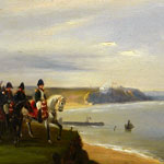 Henri Toussaint Gobert (fl.1831-1881) was born at Boulogne in 1788 and was thus possibly an eyewitness to the massing of French forces in 1803-04 for the invasion of England. Gobert later became the director of Boulogne’s art school before 1847. The catalogue of Boulogne’s Musée des beaux-arts, published in 1860, describes another a painting by Gobert depicting Napoleon surveying his invasion force and featuring the triumphal column that was intended to commemorate the success of the invasion forces.