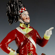 There appear to have been no additions to the military figures until 1929 when the factory's chief sculptor, Reinhold Braunschmitt introduced the series representing the uniforms of the three senior regiments of British Foot Guards from 1660 to 1930. It has been suggested that these figures were the result of a collaboration between Major E.G. Christie-Miller (1880-1967) and Karl August Kuntzsch’s two sons who succeeded him in running the factory in 1920. Christie-Miller was a Coldstream Guards officer with a strong sense of regimental tradition. He was a prisoner of war from 1914 to 18 and upon his release had been commissioned to tour the country and report on conditions in Germany. Accordingly his command of German allowed him to fully communicate his ideas to Braunschmitt and his superiors. The results of their efforts were a fine range of Guards figures for retailer Fortnum & Mason, which may be seen as the high water mark of their military figure production.