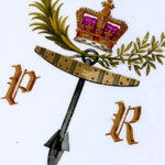 Decorated at the centre with Royal crown, anchor and initials ‘P’ and ‘R’, the rim further decorated with a border of entwined rope and fruiting oak leaves. Mark: iron red Spode.