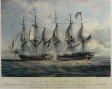 Set of four lithographs produced in 1830 as a collaboration between Captain R.H. King, R.N., the maritime painter J.C. Schetky and the engraver Louis Haghe. Published by Smith Elder & Co. Label of the long established naval and military print dealer The Parker Gallery (est. 1750), of Albermarle Street, London verso. Contained in period ebonised and gilt frames. Accompanied by the original cover for the notes bearing an autograph inscription by the son of Captain Sir Philip Vere Broke - ‘Lord Fitzroy Somerset from Sir Charles Broke Vere KCB June 28 1830’.